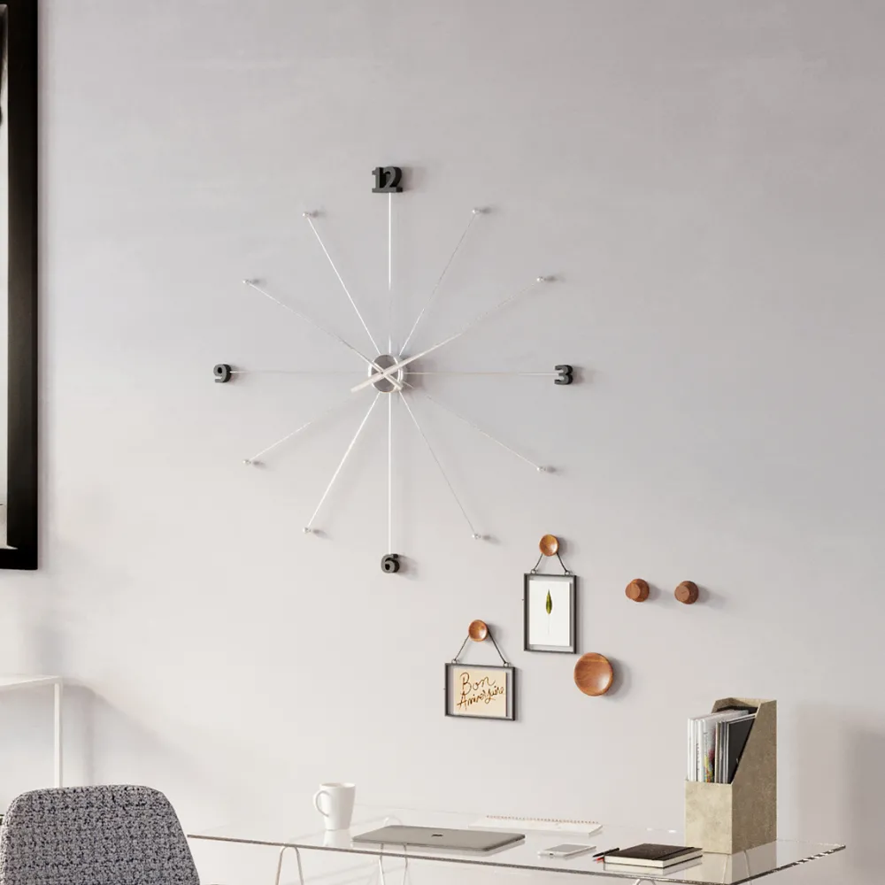 Omaperäinen kello, sateenvarjotyylillä – Tämä kello sopii ulkonäöltään sateenvarjosi kanssa yhteen. Metallipinnat säteilevät ulospäin kellon reunaa kohti, merkitsemällä sen numerot melko pienillä metallipalloilla. Pienien pallojen sijaan kompassin neljä pistettä voidaan koristaa myös mustilla numeroilla. Filigraanimetallimuodillaan Like Umbrella Chrome-kello on hyvin erikoinen teos. Nerokas kello, joka harmonisoituu minkä tahansa sisustustyylin kanssa yksinkertaisuudellaan.