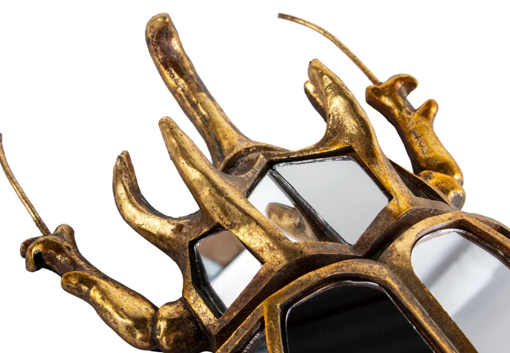 Houkutteleva koppakuoriaisen peilidekoratiivin muoto on todellinen katseenvangitsija missä tahansa seinällä. Tämä käsintehty seinäkoriste, jossa on peilattu lasi ja kultainen kehys, antaa sille elegantin kosketuksen. Se sopii täydellisesti sekä moderniin että klassiseen sisustukseen. Urban Jungle -tyylin ystäville tämä sisustustuote on ehdoton hankinta. Seinäkoriste näyttää erityisen kauniilta yhdistettynä sarjan muihin teemapeileihin.