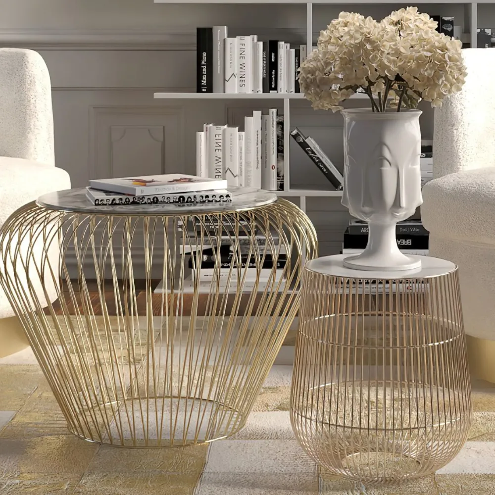 KARE Design Sohvapöydät|Olohuone*Beam Sivupöytä – Valkoinen, Marmori, Messinki Ø32cm