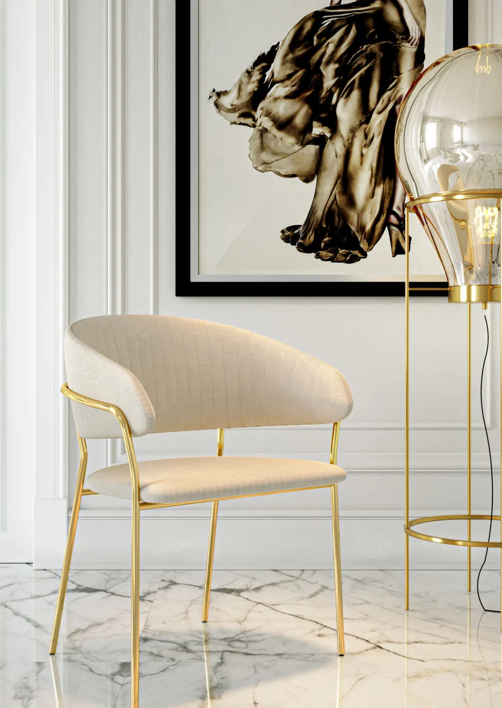 KARE Design Tuolit*Belle Tuoli Käsinojilla – Sametti, Kermanvärinen (2/Setti)